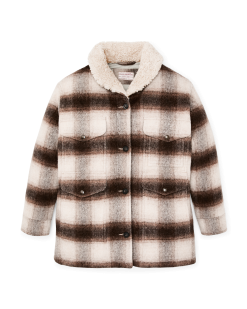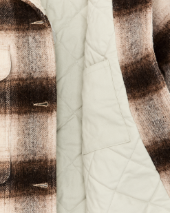 The shawl-style fleece collar extends high to protect your neck and fastens at the throat when the wind picks up. Two front cargo pockets with snapped flaps keep essentials secure. Button-front closure with snap-adjustable cuffs.