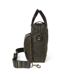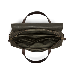 Our highest-capacity briefcase. the 24-Hour Briefcase combines the organizing ability of our Padded Computer Bag with the sleek design of our Original Briefcase. The waxed Tin Cloth material protects gear from foul weather and spray. This tightly woven canvas duck has been thoroughly saturated with wax for water resistance. The Bridle Leather handles are vegetable-tanned with tallows and wax added in the final stages. giving the leather a deep luster and lasting flexibility. The main zipper is solid brass from YKK® for a lifetime of rust-free operation. The interior is fully lined with unwaxed cotton. with a padded sleeve for laptops up to 15‚Äù. Exterior zippered pockets have organization pockets inside. Rear trolley strap slides over luggage handles. Detachable. adjustable webbing shoulder strap.
