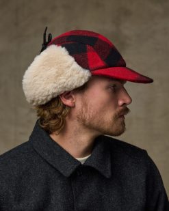 Our Mackinaw Wool Cap is made with the thick. warm wool that’s protected foresters in wintry backlands for more than a century. The 3 brim shields the face from glare. snow. and rain without sacrificing peripheral vision. The sheepskin shearling-lined flap folds down to cover the neck and ears for extra protection and ties up and out of the way when the temperature warms. Insulated crown.