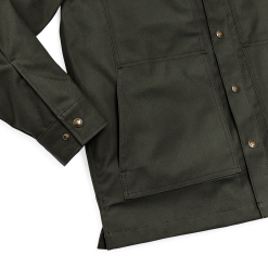 This jac-shirt is a barrier against wind. briars. and brush with minimal bulk. Unlined. it provides protection without causing overheating even as the temperature or your activity levels climb. The 10.5-oz. 2-ply by 2-ply cotton duck canvas is treated with a special hardening agent that adds to its exceptional abrasion resistance. Treated with a long-lasting DWR. it repels light rain and resists staining. An extra layer over the front shoulders adds additional weather resistance and hides the two snap-secure chest pockets. The side-entry hand pockets are easy to access and are bar-tacked for durability. The metal snaps used for the adjustable cuffs and front closure are virtually unbreakable. and are easy to operate while wearing work gloves. Side-seam slits provide greater ease of motion.