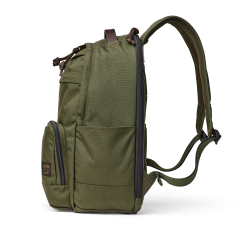 Made to withstand the abuse of travel and daily use. the versatile Filson Dryden Backpack is constructed from weather-resistant 1000D nylon for its ability to withstand long-term abrasion. With the same weave pattern as ballistic nylon. its resistance to tears and punctures is outstanding. Features a double-layer reinforced bottom for added durability. The zippered rear panel provides access to a padded pocket for laptops up to 15. Shoulder straps are ergonomically contoured for carrying comfort. Heavy-duty coil zippers.