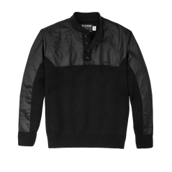 Our Henley Guide Sweater features a cape over the shoulders and arms made from our signature waxed Shelter Cloth. This water-resistant layer provides an added level of protection in wet weather. The sweater is made from 100% merino wool with tightly spun yarns for a firm surface that minimizes pilling and snags. The wool is sourced from U.S. sheep prized for their long. fine fleece. Our merino wool excels at wicking moisture to its tips for evaporation and can absorb up to 30% of its weight in water without feeling damp or clammy. This natural capillary action enables wool to insulate when wet and why it has been the fabric of choice in the outdoors for centuries. Rib-knit collar. cuffs. and hem.