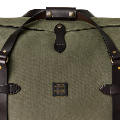 Our Rugged Twill Duffle Bags embody the philosophy that’s guided Filson since 1897. making products that are handed down rather than tossed out. Made with our signature Rugged Twill and Bridle Leather. our Large Duffle Bag is built tough enough for the most extreme conditions and sized for long excursions. The lightly waxed fabric keeps gear dry and closes with a solid brass YKK® zipper that’s protected by a snap-secured storm flap. We use Bridle Leather from Wickett & Craig for the removable shoulder strap and for the handles that wrap around the bag to securely cradle heavy loads. Interior end-cap pockets for organization.