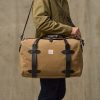 Our Rugged Twill Duffle Bags embody the philosophy that’s guided Filson since 1897. making products that are handed down rather than tossed out. Made with our signature Rugged Twill and Bridle Leather. our Large Duffle Bag is built tough enough for the most extreme conditions and sized for long excursions. The lightly waxed fabric keeps gear dry and closes with a solid brass YKK® zipper that’s protected by a snap-secured storm flap. We use Bridle Leather from Wickett & Craig for the removable shoulder strap and for the handles that wrap around the bag to securely cradle heavy loads. Interior end-cap pockets for organization.