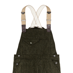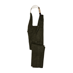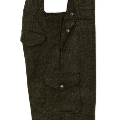 Filson wool bibs have kept outdoorsmen warm in freezing conditions for three decades. The thick 24-oz. wool is made from longest. strongest fleece fibers. The thick yarns are tightly woven into a dense twill fabric that sheds water and wind while remaining highly breathable. Our wool wicks moisture away for evaporation and insulates dry or wet. Mackinaw’s tight weave also provides outstanding durability. often being handed down to the next generation. The relaxed fit of our bibs provides unrestricted ease of motion for active use. The sides are gusseted sides with metal buttons for easy on/off. Flapped cargo pockets on the chest and legs keep essentials close at hand. Elastic suspenders. Unhemmed.