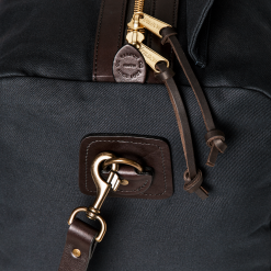 Our Rugged Twill Duffle Bags embody the philosophy that’s guided Filson since 1897. making products that are handed down rather than tossed out. Made with our signature Rugged Twill and Bridle Leather. our Medium Duffle Bag is built tough enough for the most extreme excursions and sized for long weekends and multi-day trips. The lightly waxed fabric keeps gear dry and closes with a solid brass YKK® zipper that’s protected by a snap-secured storm flap. We use Bridle Leather from Wickett & Craig for the removable shoulder strap and for the handles that wrap around the bag to securely cradle heavy loads. Interior end-cap pockets for organization.