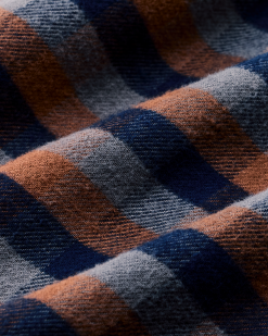 Introducing our new midweight flannel. made with 5.5-oz. brushed cotton and sure to be a go-to favorite. Woven from soft yarns. its breathability and next-to-skin comfort are outstanding. It’s modeled after shirts from the 1970s. with colors and patterns from that era. The cut is comfortably relaxed for ease of motion. Chip-resistant buttons secure the front. adjustable cuffs and no-flap chest pockets.
