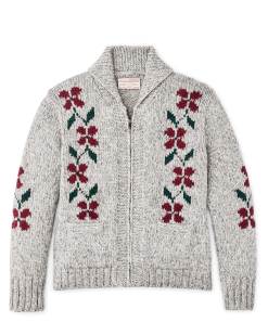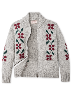 Women’s Zippered Wool Sweater – Gray / Flower